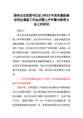 国有企业党委书记在2022年党风廉政建设和反腐败工作会议暨上半年警示教育大会上的讲话范文