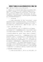 党委班子专题民主生活会对照检查材料范文(精选9篇)【篇一】党委班子专题民主生活会对照检查材料根据区委《关于开好党史学习教育专题民主生活会的通知》要求,我认真进行了会前准备,进一步学习XXX新时代中国特色社会主义思想、十九届六中全会精神和XXX总书记系列讲话、省市党代会精神,聚焦"五个带头",联系个人实际,通过征求意见、谈心谈话,仔细对照检视,找出找准问题差距,深刻剖析症结根源,制定整改措施,现将检视剖析情况报告如下:一、存在的问题(一)在带头对照深刻感悟“两个确立”的决定性意义,深刻感悟党坚持把马克思主义同中国具体实际相结合、同中华优秀传统文化相结合的非凡历程,全面贯彻XXX新时代中国特色社会...