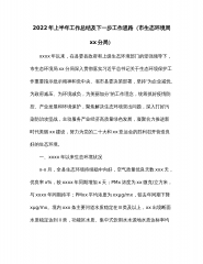 2022年上半年工作总结及下一步工作思路(市生态环境局xx分局)xxxx年以来,在县委县政府和上级生态环境部门的坚强领导下,市生态环境局xx分局深入贯彻落实习近平总书记关于生态环境保护工作重要指示批示精神和党中央、省市县委决策部署,坚持“为企业减忧、为政府减压、为环境减负,为美丽加分”的工作理念,统筹抓好疫情防控、产业发展和环境保护,聚焦解决生态环境突出问题,深入打好污染防治攻坚战,主动服务产业经济高质量绿色发展,凝聚合力推进新时代美丽xx建设,努力为党的二十大和xx亚运会的胜利召开营造良好的生态环境。一、xxxx年以来生态环境状况x-x月,全县生态环境持续稳中向好,空气质量优良天数xxx天,...