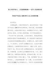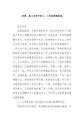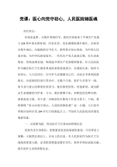 医心向党守初心,人民医院铸医魂——在市人民医院庆祝中国共产党成立104周年大会上的党课讲稿各位同志:在绿意盎然、万物并秀的时节,我们共同迎来了中国共产党成立104周年的光辉时刻。回首往昔,党在硝烟弥漫中诞生,在艰苦卓绝中成长,在砥砺前行中壮大,始终坚守初心使命,为中国人民谋幸福,为中华民族谋复兴。一代代共产党人前赴后继,以生命赴使命,用热血铸忠诚构筑起中国共产党的精神谱系。市人民医院作为城市医疗卫生服务体系的重要组成部分,自建院以来,始终与党同心、与人民同行,以守护人民健康为己任。从抗击非典到抗震救灾,从疫情防控到日常诊疗,无数个日夜,医护人员坚守一线,用专业与爱心诠释着医者担当。他们救死扶伤...