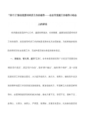“四个三”推动党委对经济工作的领导——在全市党建工作领导小组会上的讲话经济建设是党的中心工作。越是形势复杂、任务繁重,越要加强党委对经济工作的领导,把党领导经济工作的制度优势转化为治理效能,为统筹做好疫情防控和经济社会发展工作、完成年度目标任务提供根本保证。一、讲政治、管大局,提升“三力”。全市各级党组织和广大党员干部要切实增强“四个意识”,坚定“四个自信”,坚持“两个确立”,做到“两个维护”,进一步落实抓经济工作的政治责任,大力提升组织力、执行力、保障力,确保党中央决策部署和省委工作安排落实落细落地。要加强组织力,牢固树立大抓基层鲜明导向,全面增强基层党组织政治功能,推动力量下沉、管理下沉、...