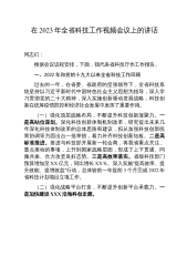 在2023年全省科技工作视频会议上的讲话同志们:根据会议议程安排,下面,我代表省科技厅作工作报告。一、2022年和党的十九大以来全省科技工作回顾过去的一年,在省委、省政府的坚强领导下,全省科技系统坚持以习近平新时代中国特色社会主义思想为指导,深入学习贯彻党的二十大精神,深入实施创新驱动发展战略,科技创新在统筹疫情防控和经济社会发展中发挥了重要作用。(一)强化顶层战略布局,不断提升科技创新凝聚力。一是高站位谋划。深化科技创新体制机制改革,研究提出未来几年深化科技体制改革的总体思路和建议,拟从加强科技创新统筹协调等方面出台一批举措,着力补齐科技创新短板。二是高标准推进。推进与科技部开展新一轮会商,...