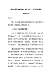 县长在县委XX届X次全体(扩大)会议上的讲话(经济工作)同志们:下面,我代表县委常委会回顾2022年全县经济工作,安排部署今年的经济工作重点任务。一、2022年经济工作回顾2022年,我县坚持以XXXX思*想为指导,深入学习贯彻dang的十九大、XX大精神和省州第XX次dang代会精神,坚持“11235”工作思路,统筹疫情防控和经济社会发展,统筹发展和安全,迎难而上、克难奋进,经济运行在合理区间,发展质量稳步提升,取得的成绩殊为不易。一是疫情防控科学有力。面对多轮疫情冲击和严峻复杂的疫情防控形势,我们牢牢把握“疫情要防住、经济要稳住、发展要安全”的总要求,坚持“外防输入、内防反弹”总策略和“动...