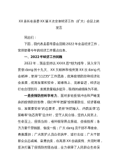 XX县长在县委XX届X次全体经济工作(扩大)会议上的发言同志们:下面,我代表县委常委会回顾2022年全县经济工作,安排部署今年的经济工作重点任务。一、2022年经济工作回顾2022年,我县坚持以XXXX思*想为指导,深入学习贯彻dang的十九大、XX大精神和省州第XX次dang代会精神,坚持“11235”工作思路,统筹疫情防控和经济社会发展,统筹发展和安全,迎难而上、克难奋进,经济运行在合理区间,发展质量稳步提升,取得的成绩殊为不易。一是疫情防控科学有力。面对多轮疫情冲击和严峻复杂的疫情防控形势,我们牢牢把握“疫情要防住、经济要稳住、发展要安全”的总要求,坚持“外防输入、内防反弹”总策略和“动...