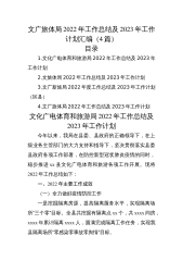 文广旅体局2022年工作总结及2023年工作计划汇编(4篇)
