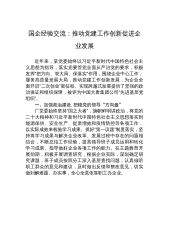 国有企业2022年党建工作总结和2023年工作思路2022年,公司各级党组织坚持以习近平新时代中国特色社会主义思想为指导,以迎接党的二十大胜利召开、深入贯彻党的二十大精神作为主线,深入贯彻落实习近平总书记关于国有企业改革发展和党的建设重要论述,巩固拓展党史学习教育成果,持续深化全国国企党建会精神落实认真落实***集团党委工作部署,紧紧围绕“***”中心工作,强化党建引领作用,助力企业转型发展,在强化政治建设从严治党管党、狠抓基层基础、深化党建融合、落实疫情防控、确保企业稳定等方面做了大量的工作,为促进公司各项年度目标任务的完成,较好发挥了政治保证作用。一、2022年党建主要工作(一)提高站位,...