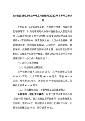 xx街道2022年上半年工作总结和2022年下半年工作计划今年以来,xx街道党工委、办事处在市委、市政府的坚强领导下,以习近平新时代中国特色社会主义思想为指导,认真贯彻习近平总书记考察xx重要讲话精神以及xxx调研xx市讲话精神,认真落实党的十九历次全会精神,紧紧围绕市委、市政府发展规划,主动作为、锐意进取、狠抓落实,统筹推进疫情防控和经济发展,健全常态化防控机制,力保生产生活秩序稳定,现将2022年上半年工作完成结和下一步工作计划报告如下:一、2022上半年总结(一)经济指标超额完成上半年财政收入xxxx.xx万元,其中税收收入完成xxxx.xx万元,比上年同期xxxx.xx万元,增收xxx...