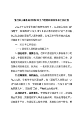 退役军人事务局2022年工作总结和2023年工作计划2022年在市委市政府的坚强领导下,在上级主管部门的指导下,我局围绕“让军人成为全社会尊崇的职业”的工作目标,全力以赴做好退役军人服务保障,各项工作均取得较大成效,现将相关工作开展情况报告如下:一、2022年工作总结:(一)退役军人思想政治引领工作1.强化领导,凝聚合力。召开市委退役军人事务领导小组会议,专题部署谋划,扎实做好拥军优属、拥政爱民工作。认真落实向退役军人事务部门派驻军队人员的要求,一名军队人员兼任局党组成员、副局长,一名军队文职人员兼任退役军人事务工作领导小组办公室秘书科副科长。2.统筹兼顾,有机融合。结合疫情防控常态化要求,加...