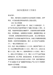 2023X区政府工作报告各位代表:现在,我代表区人民政府,向大会报告工作,请予审议,并请各位政协委员和列席人员提出意见。2022年工作回顾过去一年,面对复杂多变的经济发展形势和疫情汛情旱情等各种超预期风险挑战,在市委、市政府及区委的坚强领导下,在区人大及其常委会和区政协的监督支持下,区政府坚持以习近平新时代中国特色社会主义思想为指导,全面贯彻落实党的十九大和十九届历次全会精神以及党的二十大精神,按照省“X+X+X”工作部署,紧紧围绕市委、市政府确定的“六新”目标〔X〕、“六化”举措〔X〕及赋予武江建设韶关“双化双融”〔X〕X区和高质量发展X区的使命任务,坚持稳中求进工作总基调,统筹疫情防控和经...