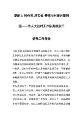 提能力 转作风 求实效 开拓乡村振兴新局面——市人大驻村工作队真抓实干提升工作质效