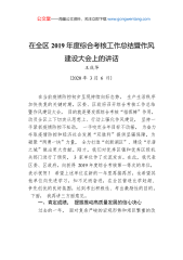 蓝绍敏、李亚平同志在全市2019年度综合考核工作总结暨作风建设大会上的讲话