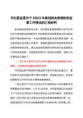 市纪委监委关于2021年新冠肺炎疫情防控监督工作情况的汇报材料