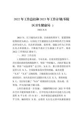 2022年工作总结和2023年工作计划(零陵区卫生健康局)