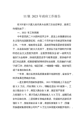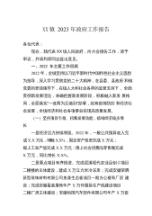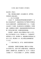 XX镇2023年政府工作报告各位代表,同志们:现在,我代表镇人民政府,向大会报告工作,请予审议,并请列席人员提出意见。一、2022年工作回顾过去的一年,在县委县政府和镇党委的坚强领导下,在镇人大的监督支持下,镇政府坚持以习近平新时代中国特色社会主义思想为指导,全面贯彻落实党的十九大、十九届历次全会和二十大精神,坚决落实党中央“疫情要防住、经济要稳住、发展要安全”的要求,高效统筹疫情防控和经济社会发展,经济运行稳中有进,各项事业取得新成效。初步预计,全镇全年一般公共预算收入完成X.X亿元;规上工业产值完成X.X亿元,同比增长X%;工业固定资产投资完成X.X亿元,同比增长X%;餐饮服务企业营业收入...