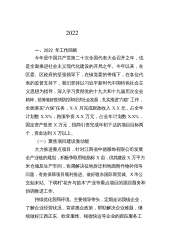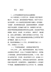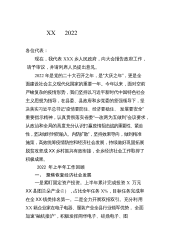 XX2022各位代表:现在,我代表XXX镇人民政府向大会做工作报告,请予审议,并请列席会议的同志提出意见。一、2022年以来主要工作回顾2022年以来,在区委、区政府的正确领导下,XXX镇认真贯彻落实区委区政府工作部署和要求,在打牢基层基础、加快工作落实上更加坚定,在维护社会稳定、解决民生问题上更加积极,在壮大村集体经济上更加主动,实施了一批群众期盼的基础性工程,解决了一些多年困扰发展的难题,办好了一批事关群众利益的惠民实事,全镇经济社会发展稳中向好,各项重点工作顺利推进。具体工作如下:(一)坚持人民至上,做好疫情防控——筑牢外防输入防线。本着对人民生命安全和身体健康高度负责的态度,镇党委政府...