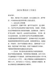 2023X市政府工作报告各位代表:现在,我代表X市人民政府,向大会报告工作,请予审议,并请各位政协委员和列席人员提出意见。2022年工作回顾过去的一年,是多年来我市遭遇困难挑战最多的一年。面对疫情三年来最严峻的防控形势,市委、市政府因时因势优化防控措施,全市人民众志成城,广大医务人员、基层工作者、志愿者勇毅坚守,广大党员干部冲锋在前,社会各界群策群力,坚决快速打赢高要“X·X”、端州“X·X”等疫情攻坚战,按照防控新阶段要求迅速把重心转向保健康、防重症,推动疫情防控顺利转段,并不遗余力X市抗疫工作,最大程度保护人民群众生命安全和身体健康。面对复杂的国际经贸环境、供应链不稳定、区域消费持续低迷等...