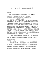 2023年XX县人民政府工作报告各位代表:现在,我代表县人民政府,向大会报告政府工作,请予审议,并请各位政协委员和其他列席人员提出意见。一、2022年工作回顾2022年是党和国家历史上极为重要的一年,也是我县发展进程中极不平凡的一年。在市委、市政府和县委的坚强领导下,在县人大、县政协的监督支持下,面对经济下行压力和疫情散发等多重考验,县政府坚持以习近平新时代中国特色社会主义思想为指导,全面贯彻落实习近平总书记考察安徽重要讲话指示精神,团结带领全县广大干部群众,按照“疫情要防住、经济要稳住、发展要安全”的总体要求,高效统筹疫情防控和经济社会发展,加快建设X区四地”,经济社会运行总体平稳、结构向优...