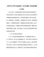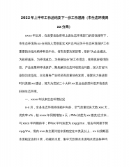 2022年上半年工作总结及下一步工作思路(市生态环境局xx分局)xxxx年以来,在县委县政府和上级生态环境部门的坚强领导下,市生态环境局xx分局深入贯彻落实习近平总书记关于生态环境保护工作重要指示批示精神和党中央、省市县委决策部署,坚持“为企业减忧、为政府减压、为环境减负,为美丽加分”的工作理念,统筹抓好疫情防控、产业发展和环境保护,聚焦解决生态环境突出问题,深入打好污染防治攻坚战,主动服务产业经济高质量绿色发展,凝聚合力推进新时代美丽xx建设,努力为党的二十大和xx亚运会的胜利召开营造良好的生态环境。一、xxxx年以来生态环境状况x-x月,全县生态环境持续稳中向好,空气质量优良天数xxx天,...