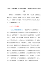 xx区卫生健康局2022第一季度工作总结和下半年工作计划