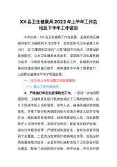 XX县卫生健康局2022年上半年工作总结及下半年工作谋划