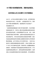 XX市重大疾病预防控制、国家免疫规划、应对突发公共卫生事件工作开展情况