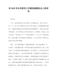 在全市防汛工作视频会议上的讲话:枕戈待旦极限应对以万全之策守护xx安澜同志们:今天,我们紧急召开全市防汛工作视频会议,核心任务只有一个:深入学习贯彻习近平总书记关于防汛救灾工作的重要指示精神,全面落实国家防总和省委省政府部署要求,深刻分析当前严峻汛情,对全市防汛工作进行再动员、再部署、再压实。我们必须以“时时放心不下”的责任感和“一失万无”的底线思维,坚决打赢今年防汛救灾这场硬仗,全力守护好人民群众生命财产安全和xx安澜。刚才,市气象局通报了近期雨情预测,市应急管理局、市水务局、市资源规划局(市地质灾害防治指挥部办公室)分别汇报了工作准备和风险排查情况。综合研判,今年我市防汛形势极为严峻复杂:...