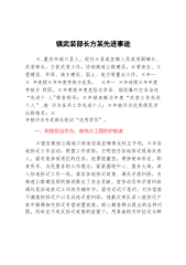镇武装部长方某先进事迹×,重庆市城口县人,现任×县咸宜镇人民政府副镇长、武装部长,主抓武装工作,协助高速公路建设,分管安全、工程建设、环保、城乡建设、国土、电力等重点工作。×年—×年连续×年年度考核为优秀,×年—×年连续×年年度考核为称职。×年荣获年度危险化学品、烟花爆竹打非治违“先进个人"荣誉称号;×年被表彰为年度“武装工作先进个人”,被评为征兵工作先进个人;×年被评为优秀便民诉讼联络员;×年被评为专武部长轮训“优秀学员”。一、积极担当作为,做伟大工程的护航者×银百高速公路城口段途径咸宜镇青龙村庄子坝,×年征地拆迁工作启动,根据工作安排,方明担任征地拆迁现场负责人。面对复杂而艰巨的任务,他勇...