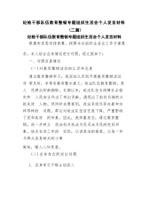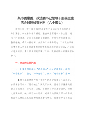 某政法机关党支部党员干部2022年度组织生活会个人对照检查发言材料根据《中共XX县委组织部关于召开2022年度基层党组织组织生活会和开展民主评议党员的通知》要求,本人紧扣会议主题,认真学习XXX精神、党章和习近平总书记重要讲话和指示批示精神,跟进学习习近平总书记在学习贯彻xx精神研讨班开班式上的重要讲话精神,系统学习《xx报告学习辅导百问》《xx党章修正案学习问答》等辅导材料,与支部委员、党员及群众代表深入开展谈心谈话,广泛征求意见建议,围绕深刻领悟“两个确立”的决定性意义、坚决做到“两个维护”,学懂弄通做实习近平新时代中国特色社会主义思想等方面,对照习近平总书记的号召和要求,对照党员义务,深...