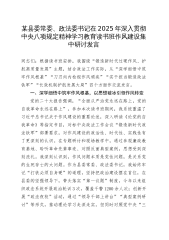 某县委常委、政法委书记在2025年深入贯彻中央八项规定精神学习教育读书班作风建设集中研讨发言同志们:根据读书班安排,我围绕“锻造新时代过硬作风、护航高质量发展”主题,结合政法工作实际,从“深学细悟中筑牢作风根基”“刀刃向内检视作风顽疾”“实干担当锻造政法铁军”“长效机制护航发展大局”四个方面作交流发言。一、深学细悟中筑牢作风根基,以思想破冰引领作风转变党的二十大报告强调,“全面从严治党永远在路上,党的自我革命永远在路上”。参加本次读书班期间,我系统重温了习近平总书记关于作风建设的重要论述,深入研读《论党的自我革命》等指定书目,对标中央政法工作会议“锻造新时代政法铁军”部署要求,对作风建设的政治...