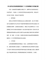 XX县司法行政系统喜迎党的二十大安保维稳工作实施方案为进一步做好防范化解重大风险工作,保障司法行政系统各项工作有序进行,为党的二十大胜利召开营造安全稳定的环境,现结合司法行政工作实际,制定如下实施方案。一、指导思想坚持以XJP新时代中国特色社会主义思想为指导,深入学习贯彻XJP法治思想和XJP总书记关于做好维护国家政治安全和社会稳定工作的重要指示精神,全面落实各级政法、维稳工作会议精神,把二十大安保维稳工作作为当前全系统的第一任务,坚持“稳定压倒一切”的方针,紧紧围绕加强和创新社会管理,以维护社会政治稳定为根本目标,按照集中领导、统一指挥、分工负责、协调合作的原则,有效处置突发聚集事件,确保在...