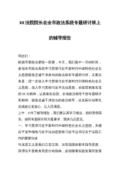政法领导干部学习贯彻习近平总书记重要讲话精神专题研讨班交流发言材料汇编(5篇)篇1:深入学习贯彻习近平总书记重要讲话精神为新中国成立70周年创造安全稳定的社会环境北京市委常委、政法委书记张XX 北京政法系统将认真学习贯彻这次研讨班精神,努力把学习研讨成果转化为做好新时代首都政法工作的强大思想力量和工作实践。 一是突出提高认识、武装头脑这个根本前提,筑牢绝对忠诚的思想根基。全市政法机关要坚决把思想和行动统一到习近平总书记重要讲话精神上来,扎紧政法姓党的根和魂,把牢“两个不能变”的纲和本,确保政法队伍绝对忠诚、绝对纯洁、绝对可靠。围绕学习贯彻习近平总书记在中央政法工作会议、省部级主要领导干部专...