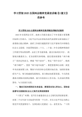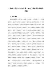 【2篇】2025年全国“两会”精神传达提纲宣讲稿与两会精神专题党课讲稿:踏春启程,向“新”而行,贯彻落实两会精神,向着高质量发展铿锵迈进2025年全国“两会”精神传达提纲宣讲稿一、过去一年高质量发展成效显著,成绩来之不易,进一步证明“两个确立”对应对各种风险挑战、推进中国式现代化建设具有决定性意义过去一年,以习近平同志为核心的党中央团结带领全党全军全国各族人民,圆满完成经济社会发展主要目标任务,取得新的巨大成就。历史和实践充分证明,我们取得的成绩归根结底在于有以习近平同志为核心的党中央坚强领导,有习近平新时代中国特色社会主义思想科学指引。我们既要学习领会党中央决策部署,也要明确政府工作报告提出...