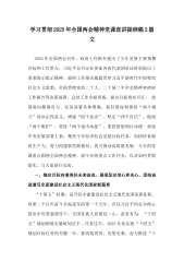 学习贯彻2025全国两会精神党课讲稿宣讲稿讲话提纲与2025年全国两会精神专题学习党课讲稿2篇文学习贯彻2025全国两会精神党课讲稿宣讲稿讲话提纲2025年全国两会召开,政府工作报告提出了今年发展主要预期目标和工作重点,习近平总书记在参加各省代表团审议时也提出了重要指示批示精神。政府工作报告通篇贯穿习近平新时代中国特色社会主义思想,全面贯彻党的二十大、二十届二中全会精神和政府工作报告等决策部署,总结工作全面客观、提出目标切实可行、政策取向精准有力、任务部署具体明确。我们要深刻领悟“两个确立”的决定性意义,增强“四个意识”、坚定“四个自信”、做到“两个维护”,坚持“两个毫不动摇”。要把思想和行动...