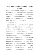 2025年XX县政府办公室法治政府建设报告及2026年工作安排2025年,县政府办公室在县委、县政府的坚强领导下,坚持以习近平新时代中国特色社会主义思想为指导,全面贯彻落实党的二十大和二十届历次全会精神,深入学习贯彻习近平法治思想,按照县委全面依法治县委员会部署要求,围绕中心、服务大局、依法履职,持续推动法治政府与法治社会建设提质增效。现将本年度工作自查情况汇报如下:一、法治政府建设情况(一)强化组织领导。将法治建设工作纳入办公室2025年度工作要点,主要负责同志切实履行推进法治政府建设第一责任人职责,始终坚持亲自部署推动法治政府建设工作,重大问题亲自过问、重点环节亲自协调、重要任务亲自督办,...