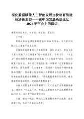 深化数据赋能人工智能发展加快培育智能经济新形态——在中国发展高层论坛2026年年会上的演讲
