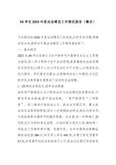 XX单位2025年度法治建设工作情况报告(精品)为全面总结2025年度法治建设工作成效,分析存在问题,明确未来方向,特将本年度法治建设工作情况报告如下。一、基本情况2025年,XX单位坚持以习近平新时代中国特色社会主义思想为指导,深入学习贯彻习近平法治思想,紧紧围绕法治政府建设总体目标,以提升人社工作法治化水平为核心,以规范执法、优化服务、深化普法为重点,全面推进法治人社建设,为全区经济社会高质量发展提供了坚实的法治保障。(一)聚焦执法规范化,筑牢法治根基始终将严格规范公正文明执法作为法治建设的首要任务,不断夯实执法基础,提升执法效能。一是严格落实“三项制度”。深入推进行政执法公示、执法全过程...