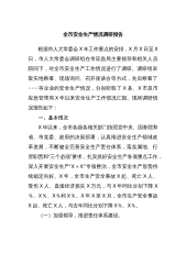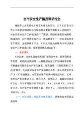 全市安全生产情况调研报告根据市人大常委会X年工作要点的安排,X月X日至X日市人大常委会调研组在市应急局主要领导和相关人员陪同下,对全市安全生产工作情况进行了调研。调研组采取实地察看、现场询问、召开座谈会等方式,先后察看了……等企业的安全生产情况,分别听取了X县、X市及市应急管理局X年以来安全生产工作情况汇报。现将调研情况报告如下:一、基本情况X年以来,全市各级各相关部门按照党中央、国务院和省、市党委、政府的决策部署,认真推进安全生产领域改革发展,不断健全完善安全生产责任体系,落实属地、行管职责和“三个必须”要求,扎实抓好安全生产各项重点工作,深入开展安全生产“X+X”专项整治,全市安全生产形势...