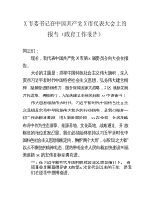 X市长在X市人民代表大会第一次会议上的政府工作报告(2022年政府工作报告)各位代表:现在,我代表市人民政府向大会报告工作,请予审议,并请各位政协委员和列席人员提出意见。一、本届政府及2021年工作回顾过去五年是极不寻常的五年。面对前所未有的机遇和挑战,全市上下深入贯彻习近平新时代中国特色社会主义思想,全面落实党的十九大和十九届历次全会以及习近平总书记对xx重要讲话重要指示批示精神,在省委、省政府和市委的坚强领导下,坚持稳中求进、奋发作为,取得了极不平凡的成绩。(一)综合实力实现历史跨越。先后实现经济总量过万亿、地方一般公共预算收入过千亿、常住人口过千万的新跨越,跻X市行列。X区经济总量跃居X...