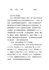 XXXXXX202220XX年工作回顾20XX年是中国共产党成立X周年,是“十四五”开局之年,也是开启全面建设社会主义现代化国家起步之年。一年来,在区委、区政府和镇委的正确领导下,在镇人大的监督支持下,我们坚持以习近平新时代中国特色社会主义思想为指导,全面贯彻党的十九大和十九届历次全会精神,坚持稳中求进工作总基调,深入贯彻新发展理念,紧紧围绕省委“X+X+X”工作部署和市委“十大行动方案”,全力抓好稳增长、促改革、调结构、惠民生、防风险、保稳定各项工作。全镇上下团结一心,攻坚克难,顺利完成全年主要目标任务,有力推动经济社会发展再上新台阶,“十四五”实现良好开局。一年来,我们主要取得了以下工作成...
