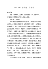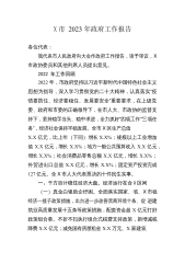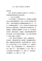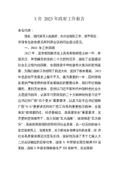 X市2023年政府工作报告各位代表:现在,我代表市人民政府向大会报告工作,请予审议X市政协委员和其他列席人员提出意见。一、过去五年及2022年工作回顾过去五年,是天津发展极不平凡的五年。习近平总书记亲临天津视察指导工作,向第三届世界智能大会、首届世界职业技术教育发展大会发来贺信,为天津发展注入了强大政治动力、精神动力、工作动力。我们始终坚持以习近平新时代中国特色社会主义思想为指导,认真贯彻落实党的十九大和十九届历次全会精神,全面学习贯彻党的二十大精神,深入贯彻落实习近平总书记对天津工作“三个着力”重要要求和一系列重要指示批示精神,认真落实中央决策部署和市委工作要求,坚持稳中求进工作总基调,笃定...