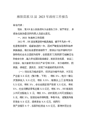 麻阳苗族XX县2023年政府工作报告各位代表:现在,我XX县人民政府向大会报告工作,请予审议,并请各位政协委员和列席人员提出意见。一、2022年政府工作回顾2022年,XX县发展进程中极具挑战、极不平凡的一年,也是惟其艰辛、砥砺奋进的一年。面对严峻复杂形势和各种风险挑战,我们在县委坚强领导下,坚持以习近平新时代中国特色社会主义思想为指导,全面落实“三高四新”①战略定位和使命任务,融入怀化国际陆港建设,抢抓历史机遇、奋起二次创业,做大做强“四大百亿产业”②和X区,全力稳增长、防风险、保稳定、惠民生,实现了本届政府良好开局。(一)综合实力稳步提升。经济运行稳中向好。X区生产总值X.X亿元(预计数,...