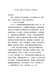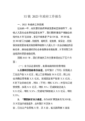 XX镇2023年政府工作报告各位代表:根据大会安排,我代表镇人民政府向大会报告工作,请予审议,并请列席会议的同志提出意见。一、2022年工作回顾2022年是新一届政府履行职责的第一年,也是驩城发展进程中极具考验、极不平凡的一年。面对经济下行压力加剧和复杂多变的疫情形势,在县委县政府和镇党委的坚强领导下,全镇上下认真贯彻习近平新时代中国特色社会主义思想和党的二十大精神,事不避难、事争一流,有效应对各种困难和挑战,全面开启驩城建设新征程。全年完成一般公共预算收入X万元,其中工商税收X万元;完成固定资产投资X.X亿元,增长20.X%;居民人均可支配收入达到20096元,增长X.X%,经济社会运行整体...
