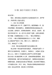 XX镇2023年政府工作报告各位代表:现在,我代表镇人民政府向大会报告政府工作,请予审议,并请列席人员提出意见。一、2022年工作回顾刚刚过去的2022年,是极不平凡、极其艰难的一年。面对各种困难,我们迎难而上,紧紧团结和依靠全镇各族人民,众志成城,逆风前行,统筹推进稳增长、保生态、促改革、惠民生等各项工作,在一些工作上取得了进展,在部分领域实现了突破,完成财政总收入X万元,一般公共预算收入X万元,一般公共预算财政拨款支出X.X万元,规模以上固定资产投资X万元,增长X.X%;招商引资X万元,粮食总产X万吨。一年来,我们在持续发展中造生态建设之势苍山洱海一体化保护实现“双推进”。洱海保护治理“X...