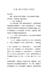 XX镇2023年政府工作报告各位代表,同志们:现在,我代表镇人民政府,向大会报告工作,请予审议,并请列席人员提出意见。一、2022年工作回顾过去的一年,在县委县政府和镇党委的坚强领导下,在镇人大的监督支持下,镇政府坚持以习近平新时代中国特色社会主义思想为指导,全面贯彻落实党的十九大、十九届历次全会和二十大精神,坚决落实党中央“疫情要防住、经济要稳住、发展要安全”的要求,高效统筹疫情防控和经济社会发展,经济运行稳中有进,各项事业取得新成效。初步预计,全镇全年一般公共预算收入完成X.X亿元;规上工业产值完成X.X亿元,同比增长X%;工业固定资产投资完成X.X亿元,同比增长X%;餐饮服务企业营业收入...
