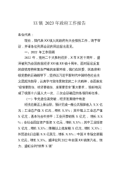 XX镇2023年政府工作报告各位代表、同志们:现在,我代表XX镇人民政府向大会作工作报告,请予审议,并请列席会议的同志提出意见。一、2022年工作回顾2022年是党的二十大胜利召开之年。一年来,面对极为艰巨复杂的疫情防控形势,我们坚持以习近平新时代中国特色社会主义思想为指导,认真落实“疫情要防住、经济要稳住、发展要安全”和省委“一改两为五做到”要求,在县委、县政府和镇党委的坚强领导下,顶住宏观经济下行压力,勠力同心、攻坚克难、艰苦奋斗,圆满完成年初制定的各项工作任务,实现全镇经济运行缓中趋稳、稳中向好。全年完成一般公共预算收入X万元。实现规上工业企业总产值X万元。实现规上工业企业税收X万元。农...