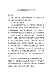 2023X区政府工作报告各位代表:现在,我代表区人民政府向大会报告工作,请予审议,X区政协委员和其他列席人员提出意见。2022年主要工作和成效2022年是党的二十大召开之年,也是余杭发展史上极具考验和极不平凡的一年。一年来,我们坚持以习近平新时代中国特色社会主义思想为指导,认真落实上级党委、政府和区委的决策部署,在区人大和区政协的监督支持下,全区上下踔厉奋发、笃行实干,紧紧围绕“建设X市新中心、争当‘两个先行’排头兵”的战略目标,统筹落实“疫情要防住、经济要稳住、发展要安全”三件大事,付出了最大努力,争取了最好结果,以优异成绩向党的二十大献礼。全年实X区生产总值X.X亿元;完成财政总收入X.X...