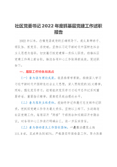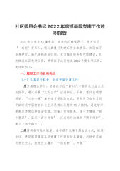 社区委员会书记2022年度抓基层党建工作述职报告