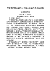 在常德市第八届人民代表大会第二次会议闭幕会上的讲话(2022年12月31日)湖南省常德市委书记曹志强各位代表,同志们:常德市第八届人民代表大会第二次会议,在全体代表和与会同志的共同努力下,圆满完成了各项议程,即将胜利闭幕。大会期间,各位代表牢记神圣使命,依法履行职责,共商发展大计,彰显了饱满的政治热情、强烈的使命担当、良好的精神风貌。大会审议通过了政府工作报告等6个报告及决议,表决通过了市人大有关专门委员会主任委员名单,选举产生了市人民检察院检察长、部分市人大常委会委员和省十四届人大代表,顺利实现了组织意图。这次大会,是一次高举旗帜、凝聚合力的大会,是一次求真务实、共谋发展的大会,是一次发扬民...