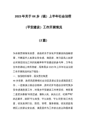 (2篇)2023年关于XX乡(镇)上半年社会治理(平安建设)工作开展情况
