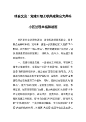 经验交流:党建引领互联共建聚合力 共绘小区治理幸福和谐画